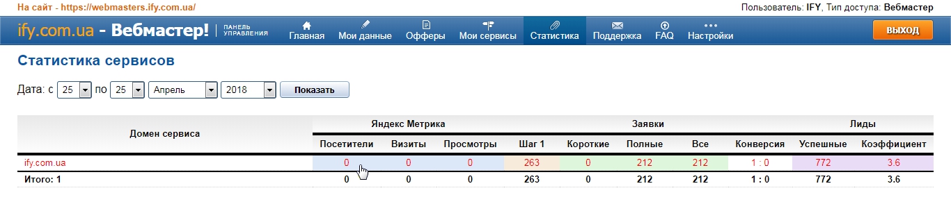 "Статистика" появляется информация о посетителях сайта